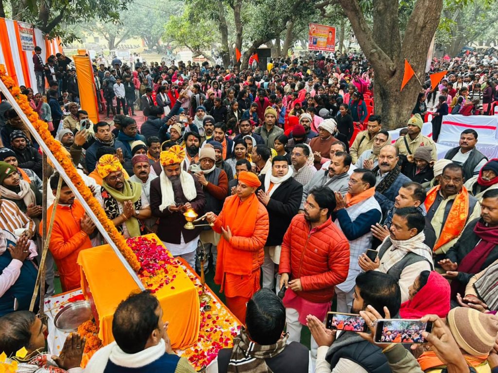 महराजगंज: सकल हिंदू समाज के तत्वावधान में रहसुगुरु धाम, पनियरा में रविवार को एक भव्य एवं गरिमामय हिंदू सम्मेलन का आयोजन किया गया। सम्मेलन में साधु-संतों, महात्माओं, गायत्री परिवार के सदस्यों तथा सकल हिंदू समाज से जुड़े हजारों लोगों ने उत्साहपूर्वक सहभागिता की। पूरा आयोजन राष्ट्रभक्ति, सनातन चेतना और सामाजिक एकता के संदेश से ओत-प्रोत रहा।