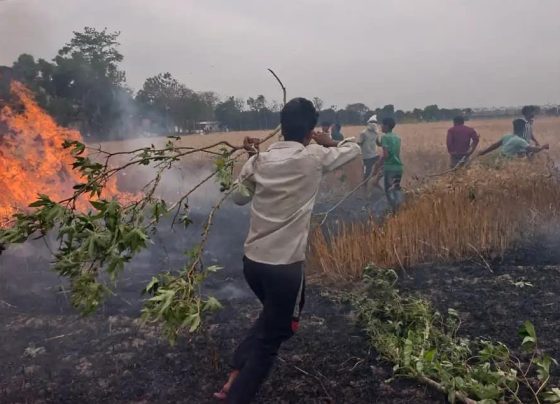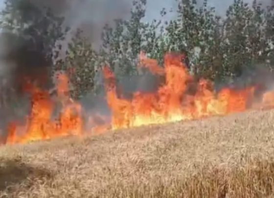 पनियरा में भीषण अग्निकांड, 12 एकड़ गेहूं की फसल जलकर खाक, फायर ब्रिगेड की देरी पर भड़के ग्रामीण