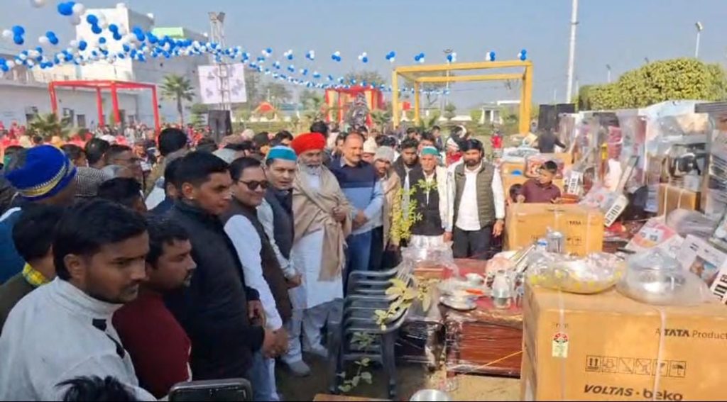 बुलंदशहर: भारतीय किसान यूनियन (टिकैत) के राष्ट्रीय प्रवक्ता राकेश टिकैत रविवार को जनपद के खुर्जा क्षेत्र में आयोजित एक सामूहिक विवाह समारोह में शामिल हुए। इस अवसर पर उन्होंने नवविवाहित जोड़ों को आशीर्वाद देते हुए उनके उज्ज्वल और सुखद वैवाहिक जीवन की कामना की।