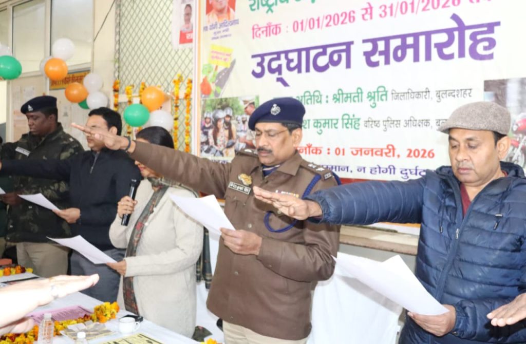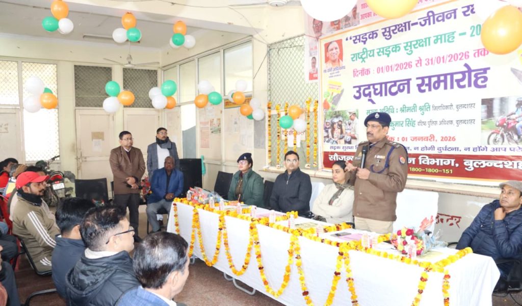 बुलंदशहर: जनपद में बढ़ती सड़क दुर्घटनाओं पर प्रभावी नियंत्रण और आमजन में यातायात नियमों के प्रति जिम्मेदारी का भाव पैदा करने के उद्देश्य से 1 जनवरी से 31 जनवरी 2026 तक सड़क सुरक्षा माह का आयोजन किया जा रहा है। गुरुवार को इस अभियान का औपचारिक शुभारंभ जिलाधिकारी श्रुति एवं वरिष्ठ पुलिस अधीक्षक दिनेश कुमार सिंह द्वारा रोडवेज बस स्टैंड परिसर से किया गया।